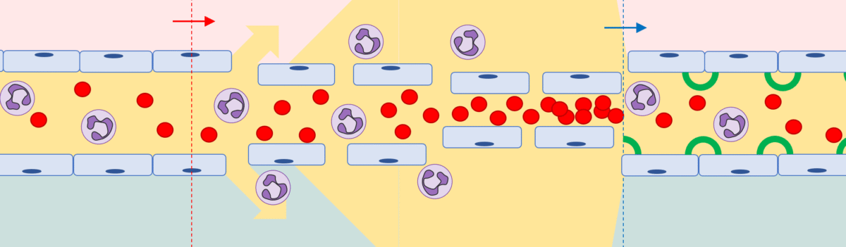 毛細血管漏出症候群(Capillary leak syndrome; CLS)は、感染等を契機に毛細血管の機能が破綻し、血漿成分等が血管外に漏出する状態を指します。肺でこれが生じると血漿が肺胞に滲出し換気が障害されます(呼吸窮迫症候群; ARDS)。世界で年間1,000万人ほどに発症しますが、これを標的とした治療法はほとんどありません。この研究開発拠点では、CLSに対する理解を深め、これに対する治療法を開発します。