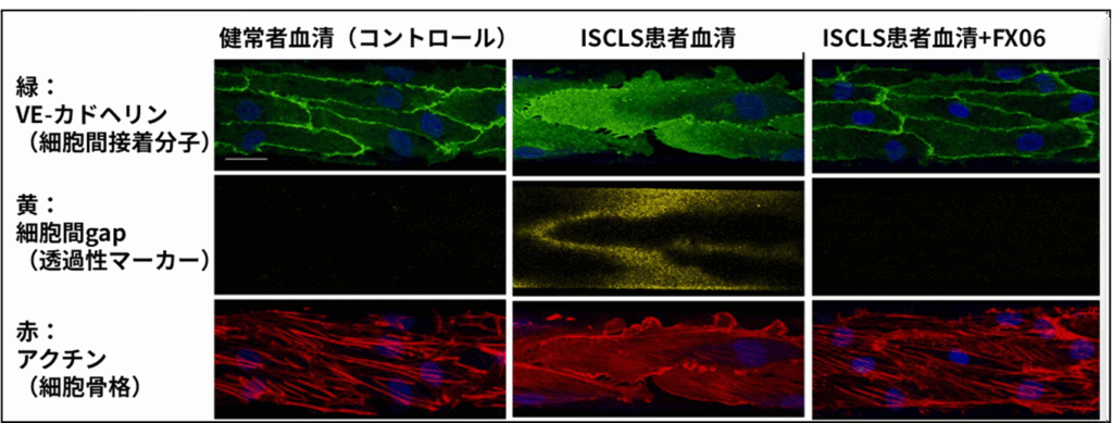 治療薬開発の先頭にあるものはヒトフィブリノペプチドBβ15-42(Bβ)です。Bβはヒトの体内でも作り出される内因性ペプチドですが、血管内皮を保護する作用を有しており、CLSの治療薬となる可能性があります。