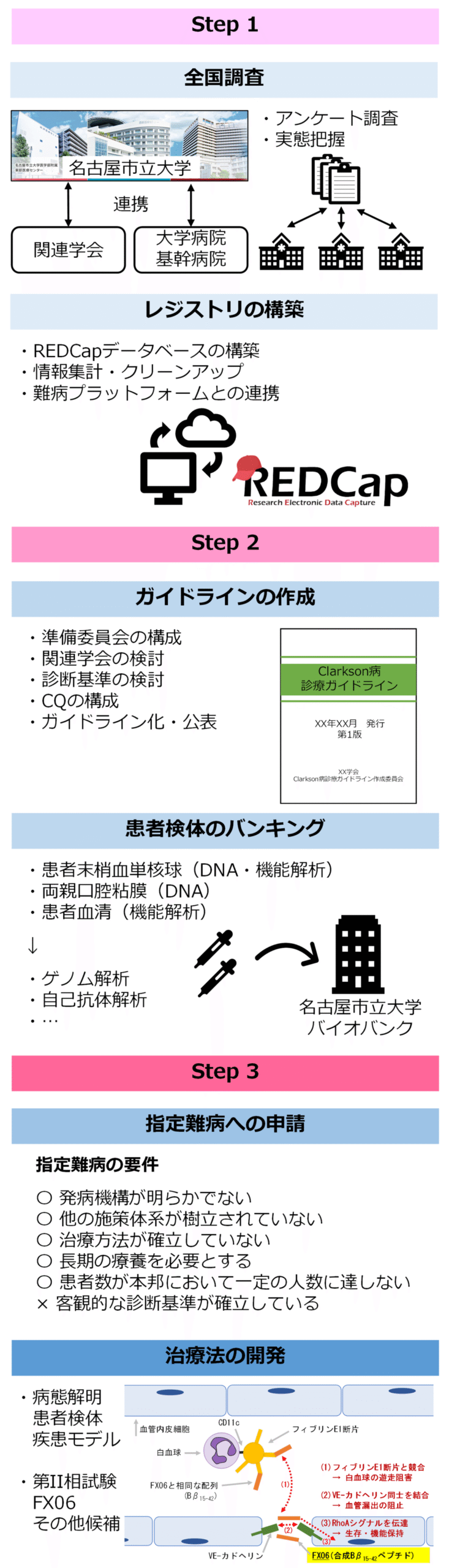 クラークソン病に対して治療法が開発できれば、同じ治療法がもっと多くの疾患で使える可能性が高まります。目標は、原因によらず広くCLSを治療できる方法を開発することです。